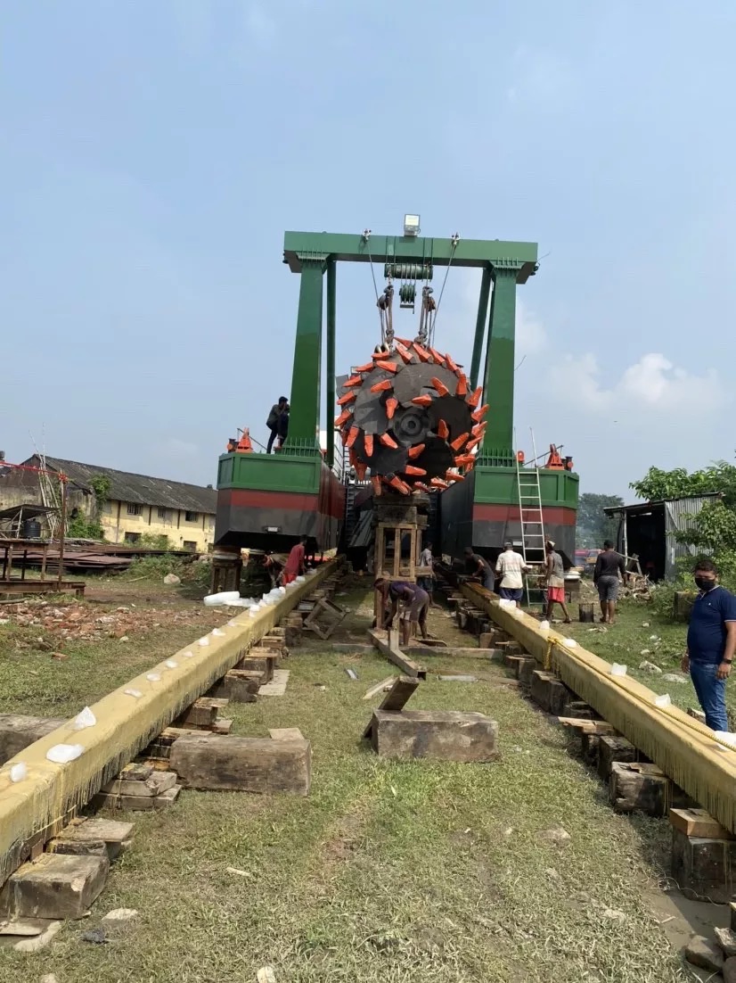 2020年10月22日,我公司為印度客戶定制的流量5000立方挖泥船順利下水,調(diào)試完成!