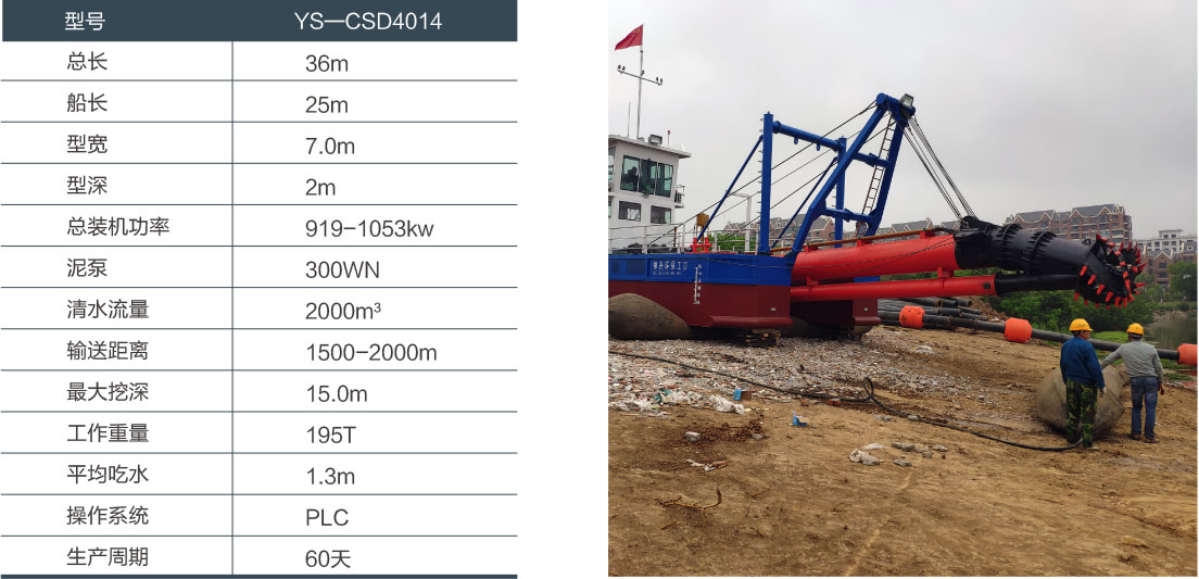 永生YS—CSD 4014這種絞吸式挖泥船是銷售量比較大的船型,運(yùn)輸使用方便大小合適,可用于近海碼頭清淤,河道清淤湖泊采砂或清淤。