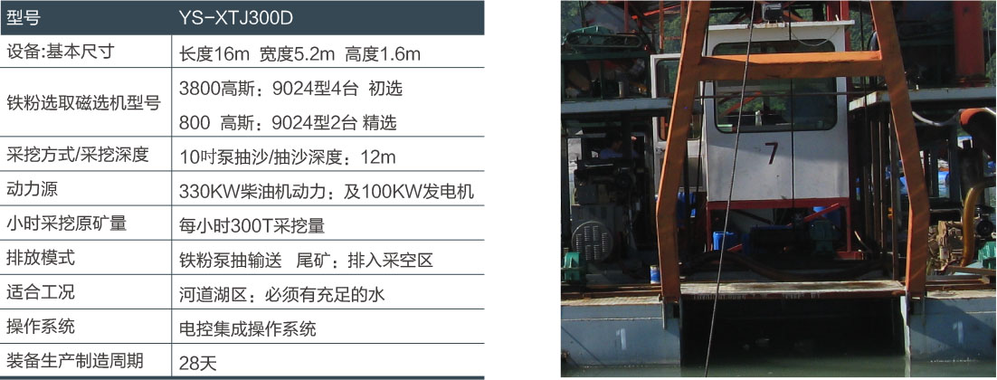 通過(guò)高壓水槍沖擊將水底礦料沖擊泛起,然后利用泵組將礦料抽取輸送進(jìn)入反沖箱→滾筒篩→磁選機(jī)→鐵粉泵組輸送→尾礦物料泵組輸送→完成整個(gè)選礦流程。