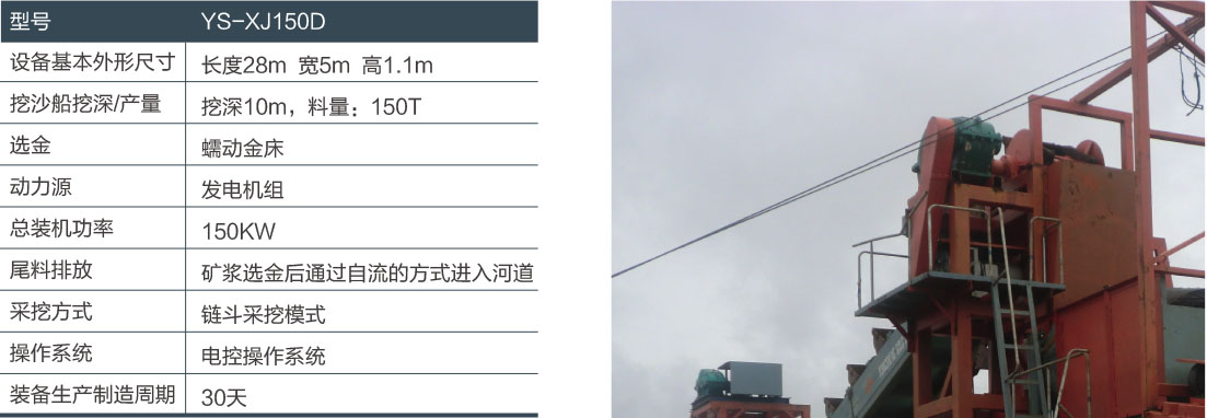 YS-XJ150D抽沙選鐵船根據(jù)要求。適合工況比較復(fù)雜的環(huán)境,采用加強(qiáng)型船體及鏈板、挖斗等。
